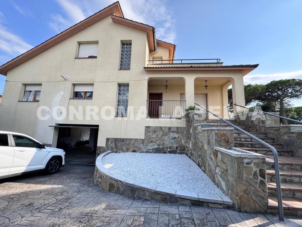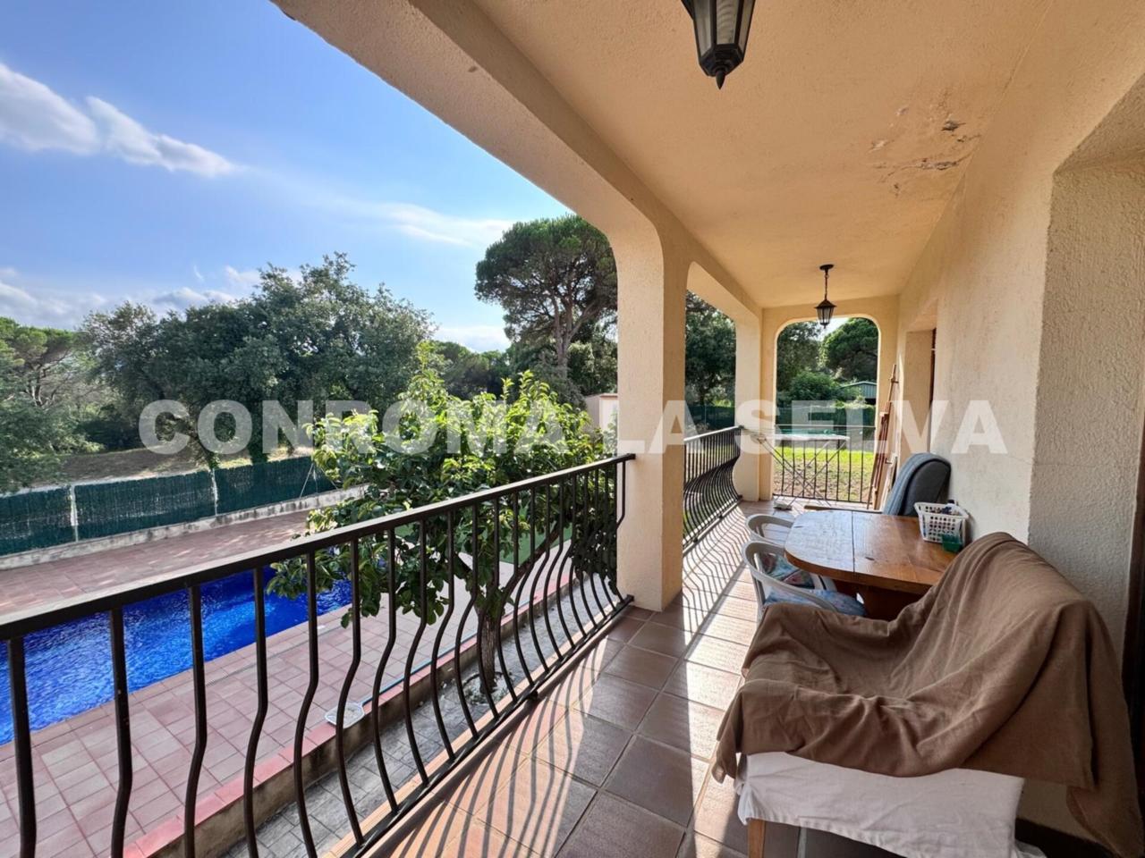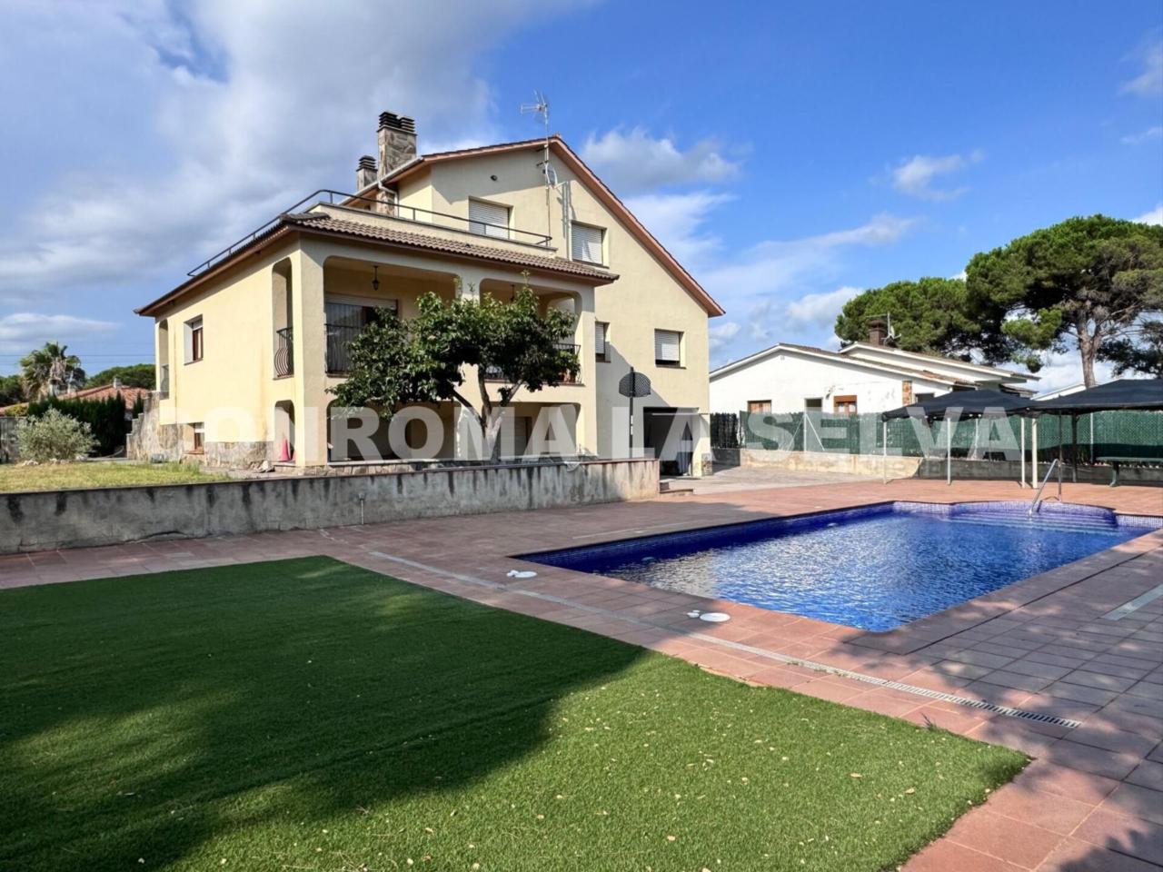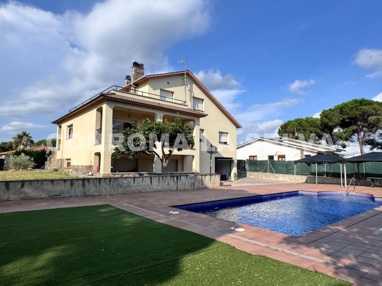Viva con todas las condiciones de comodidad y amplitud que le ofrece esta encantadora casa en Tordera, cuenta con una superficie total de 456 con 227m2 útiles distribuidos en dos plantas de vivienda y con 159m2 de zona de aparcamiento-salón de juegos-trastero etc; la casa esta construida en una parcela doble totalmente plana con superficie de 1463 m². En su interior, encontrarás en la primera planta tres confortables habitaciones dobles una de ellas con salida a balcón con vistas a la montaña, dos cuartos de baño completos, salón comedor con chimenea y salida a terraza y balcones con vistas al jardín- montaña y amplia cocina individual; para completar la comodidad de esta preciosa casa contamos con otra planta con tres habitaciones dobles, salón comedor con chimenea-aíre acondicionado y un cuarto de baño completo, armarios empotrados en zonas de lavadero y distribuidor, calefacción de gas natural, chimeneas en cada salón y más comodidades. La propiedad también ofrece un garaje para varios coches, un hermoso jardín privado, una piscina de agua salina de 10 por 5 metros, terrazas y mucho más. El chalet está en buen estado y se encuentra en una zona residencial tranquila de Tordera, con fácil acceso, a sólo 45 minutos de Barcelona Ciudad y con estación de tren en Tordera, además de muchos otros servicios y comodidades del entrono. ¡No pierdas la oportunidad de vivir en este paraíso!